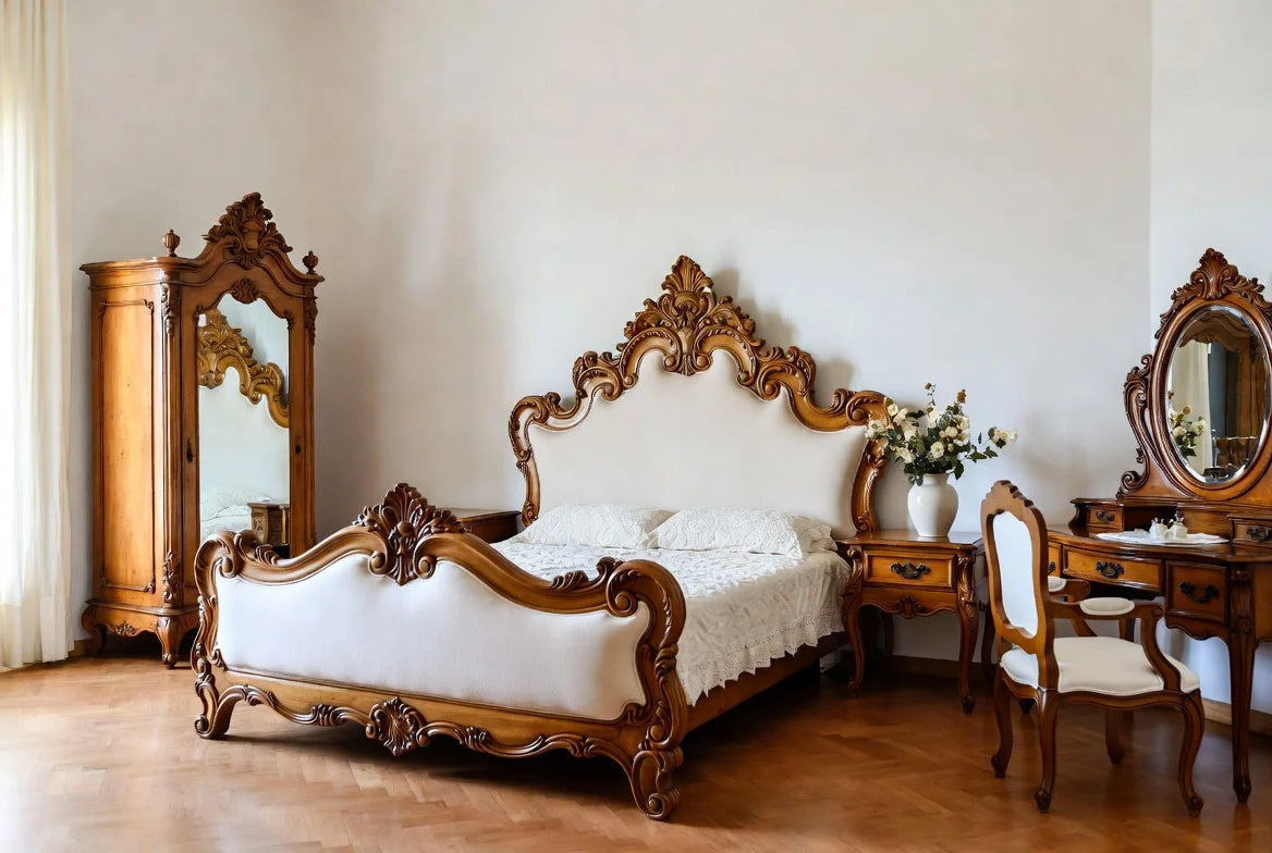 Personalize your Provence Suite to perfectly match your vision—choose from upholstery colors like Beige, Grey, or even Leather for the bed and chair. You can also adjust the finish (Gloss or Matte), modify design elements such as carving details or leg styles, or request size variations to fit your space. Message us via email or chat reference (Provence Suite) to create your bespoke masterpiece.