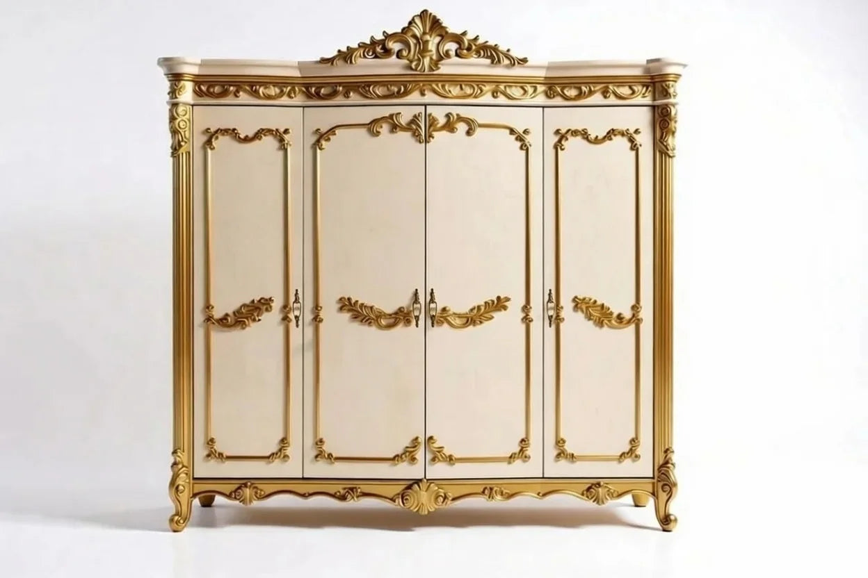 - Tall 4-Door Wardrobe/Armoire (arched crown & decorative panels)